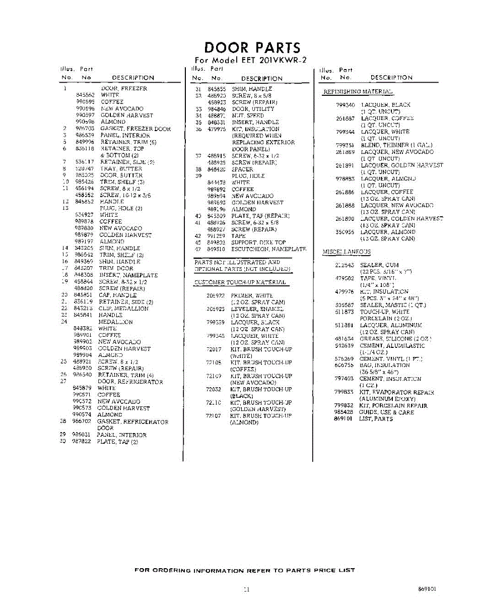 Parts for EET201VKWR2