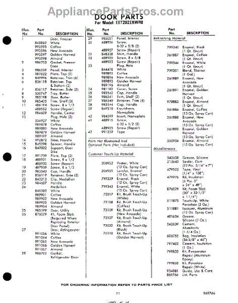 Parts for Whirlpool EET202EKWR0: 11 - Lit / Optional Parts