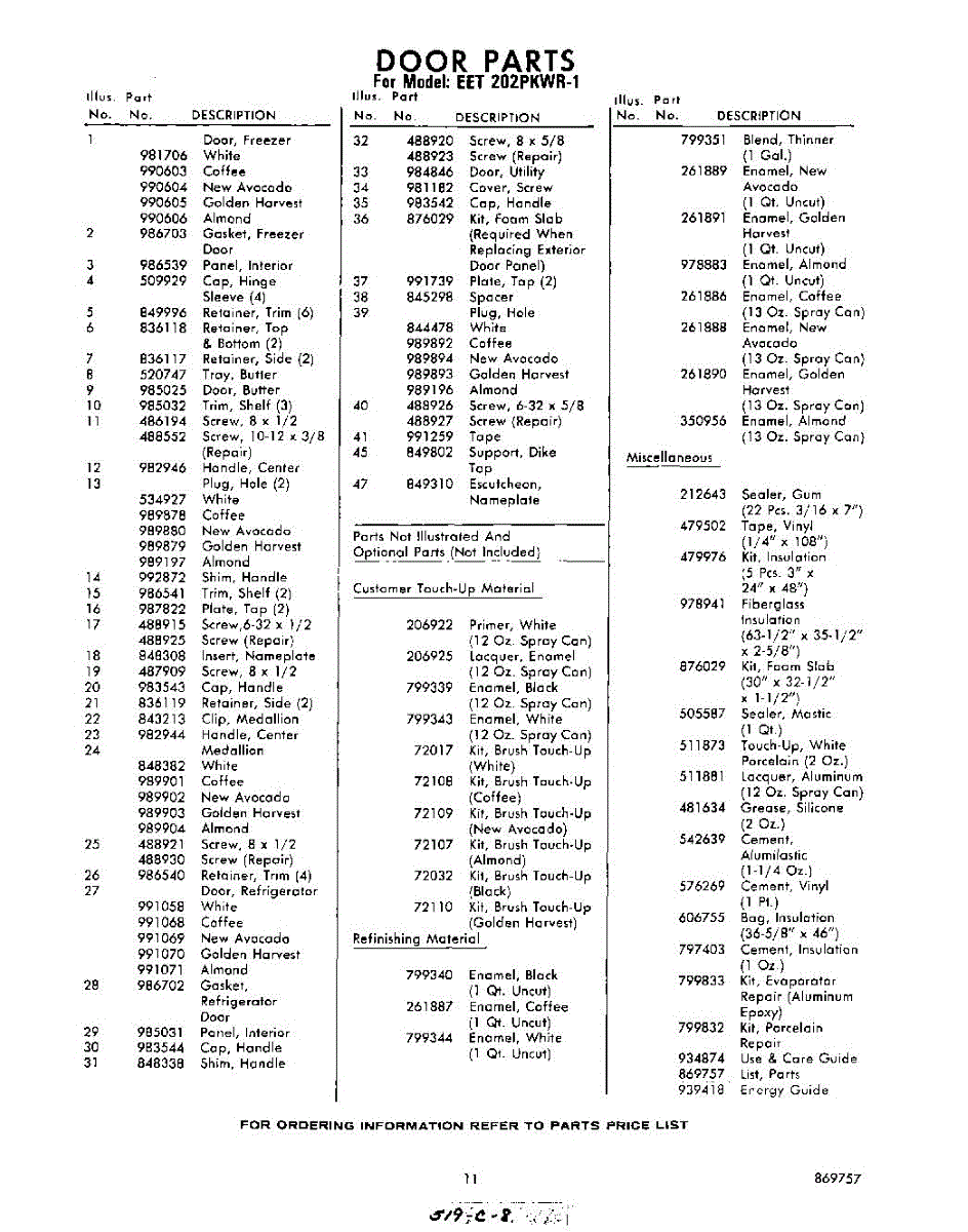 Parts for Whirlpool EET202PKWR1: 11 - Lit / Optional Parts