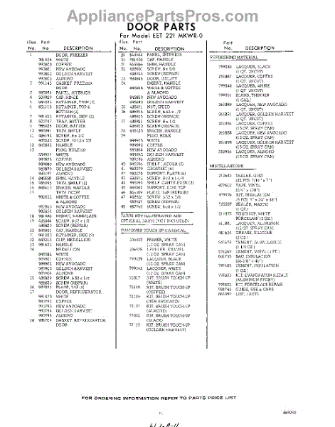 Parts for Whirlpool EET221MKWR0: 11 - Lit / Optional Parts