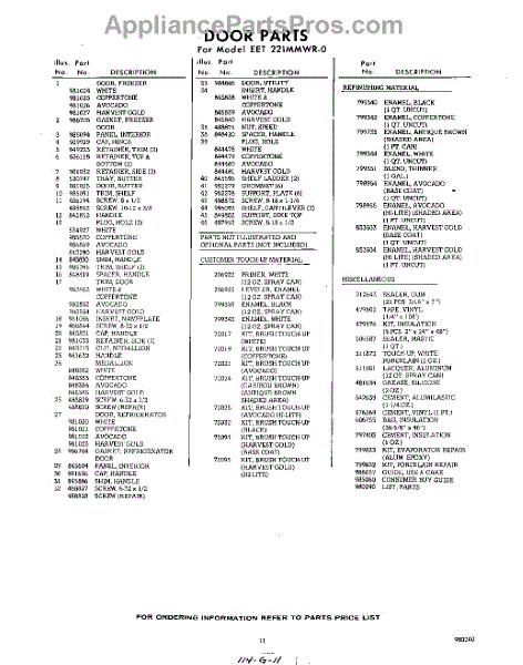 Parts for Whirlpool EET221MMWR0: 11 - Lit / Optional Parts