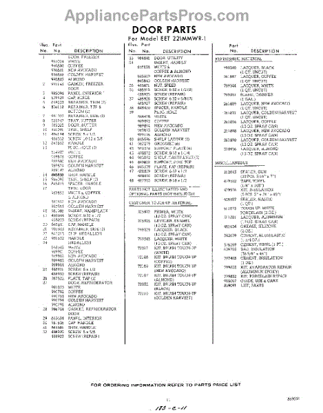 Parts for Whirlpool EET221MMWR1: 11 - Lit / Optional Parts