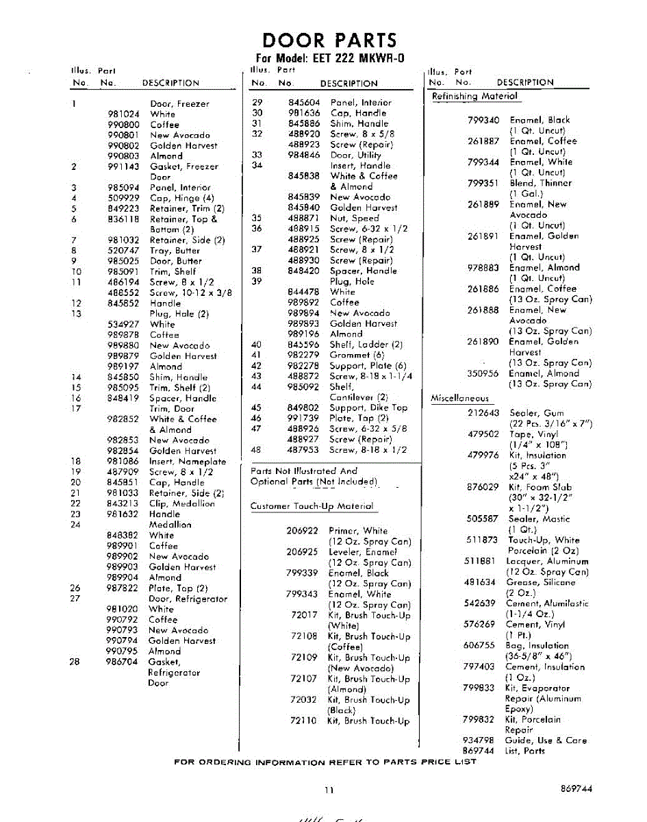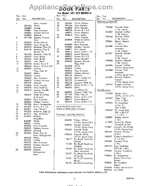 Parts for Whirlpool EET222MKWR0: 11 - Lit / Optional Parts