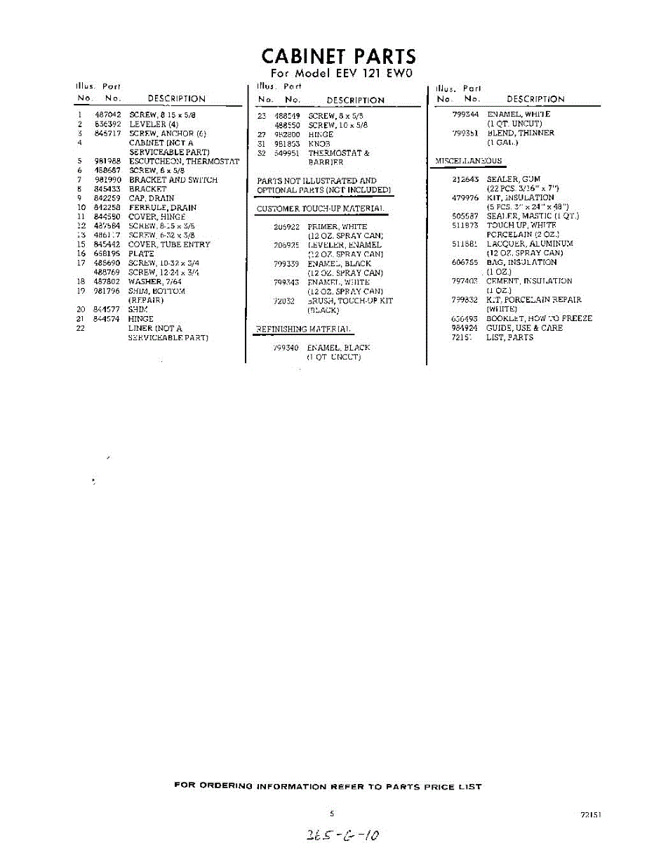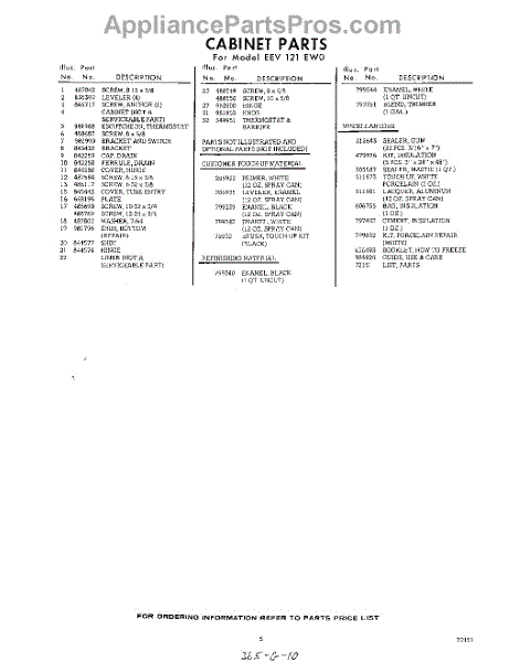 Parts for Whirlpool EEV121EW0: 05 - Lit / Optional Parts