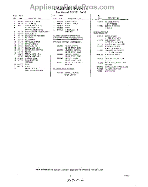 Parts for Whirlpool EEV121FW0: 05 - Lit / Optional Parts