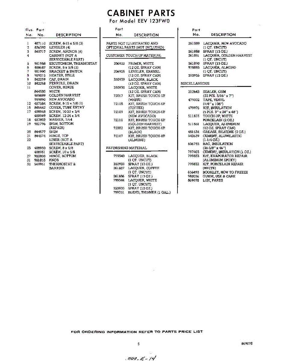 Parts for EEV123FW0