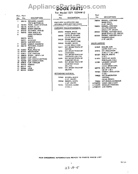Parts for Whirlpool EEV152NW0: 05 - Lit / Optional Parts