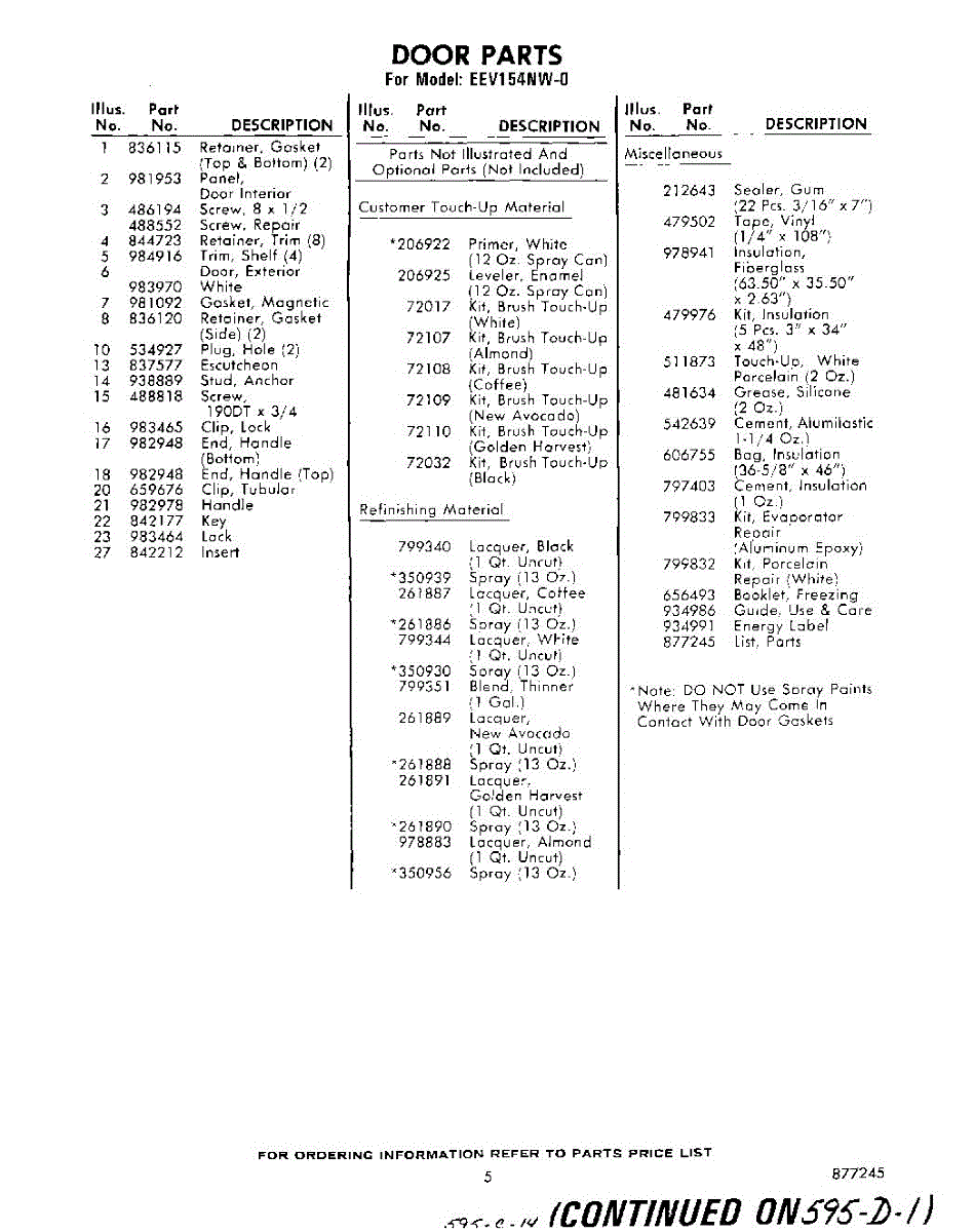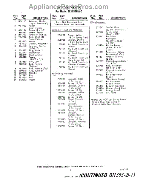 Parts for Whirlpool EEV154NW0: 05 - Lit / Optional Parts