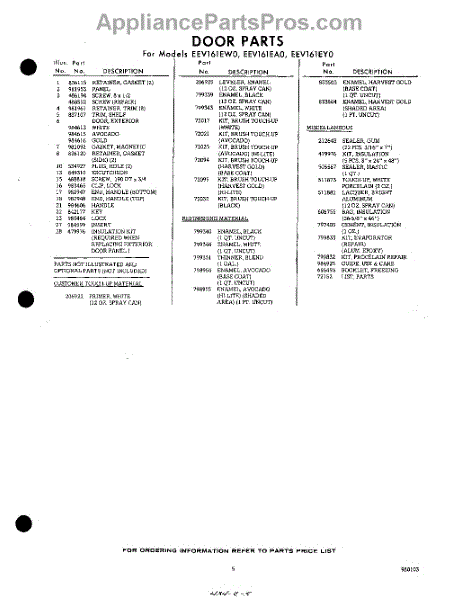 Parts for Whirlpool EEV161EA0: 05 - Lit / Optional Parts