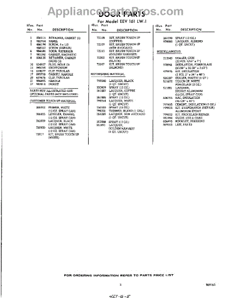 Parts for Whirlpool EEV161LW1: 05 - Lit / Optional Parts