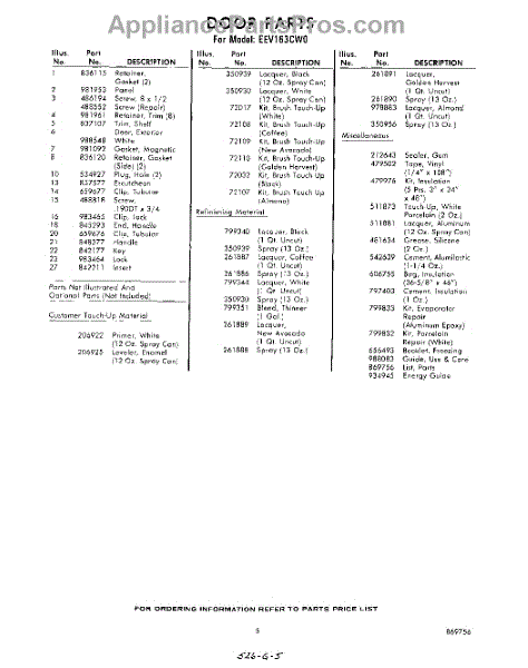 Parts for Whirlpool EEV163CW0: 05 - Lit / Optional Parts