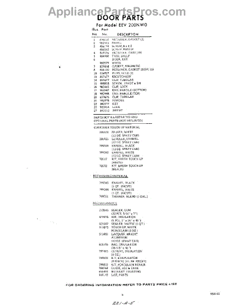 Parts for Whirlpool EEV200NW0: 05 - Lit / Optional Parts