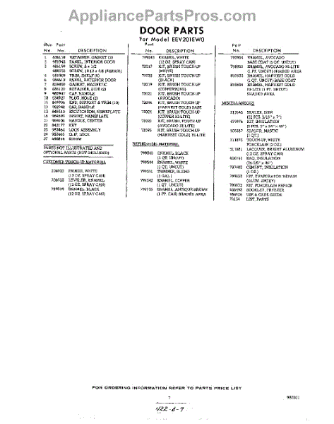Parts for Whirlpool EEV201EW0: 07 - Lit / Optional Parts