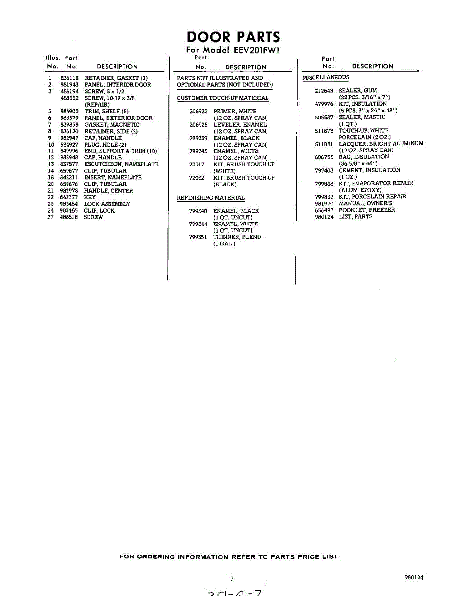 Parts for Whirlpool EEV201FW1: 07 - Lit / Optional Parts
