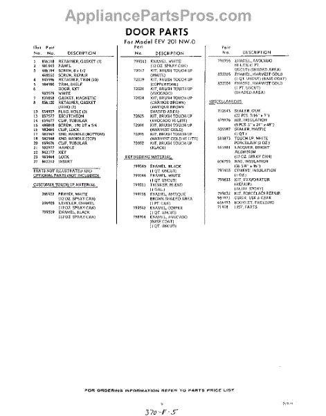 Parts for Whirlpool EEV201NW0: 05 - Lit / Optional Parts