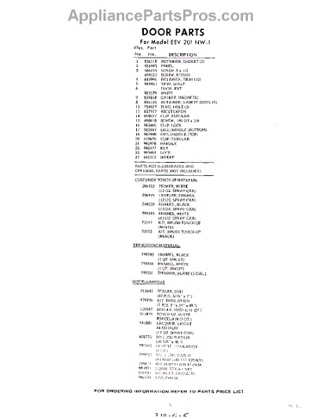Parts for Whirlpool EEV201NW1: 05 - Lit / Optional Parts