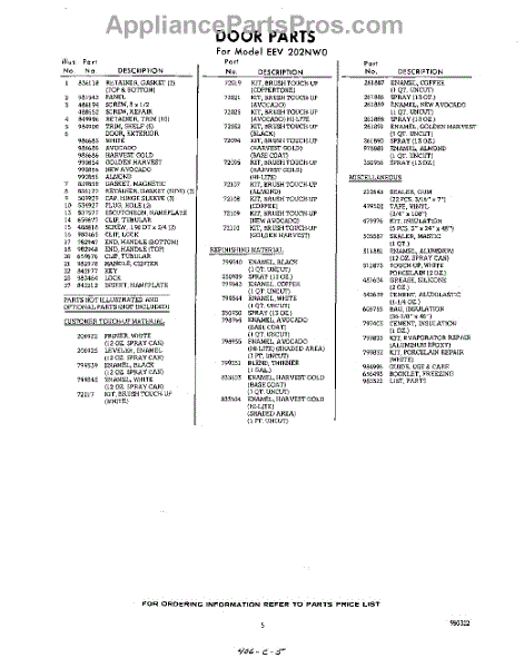 Parts for Whirlpool EEV202NW0: 05 - Lit / Optional Parts
