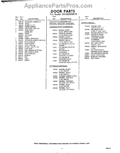 Parts for Whirlpool EEV202XAR0: 05 - Lit / Optional Parts