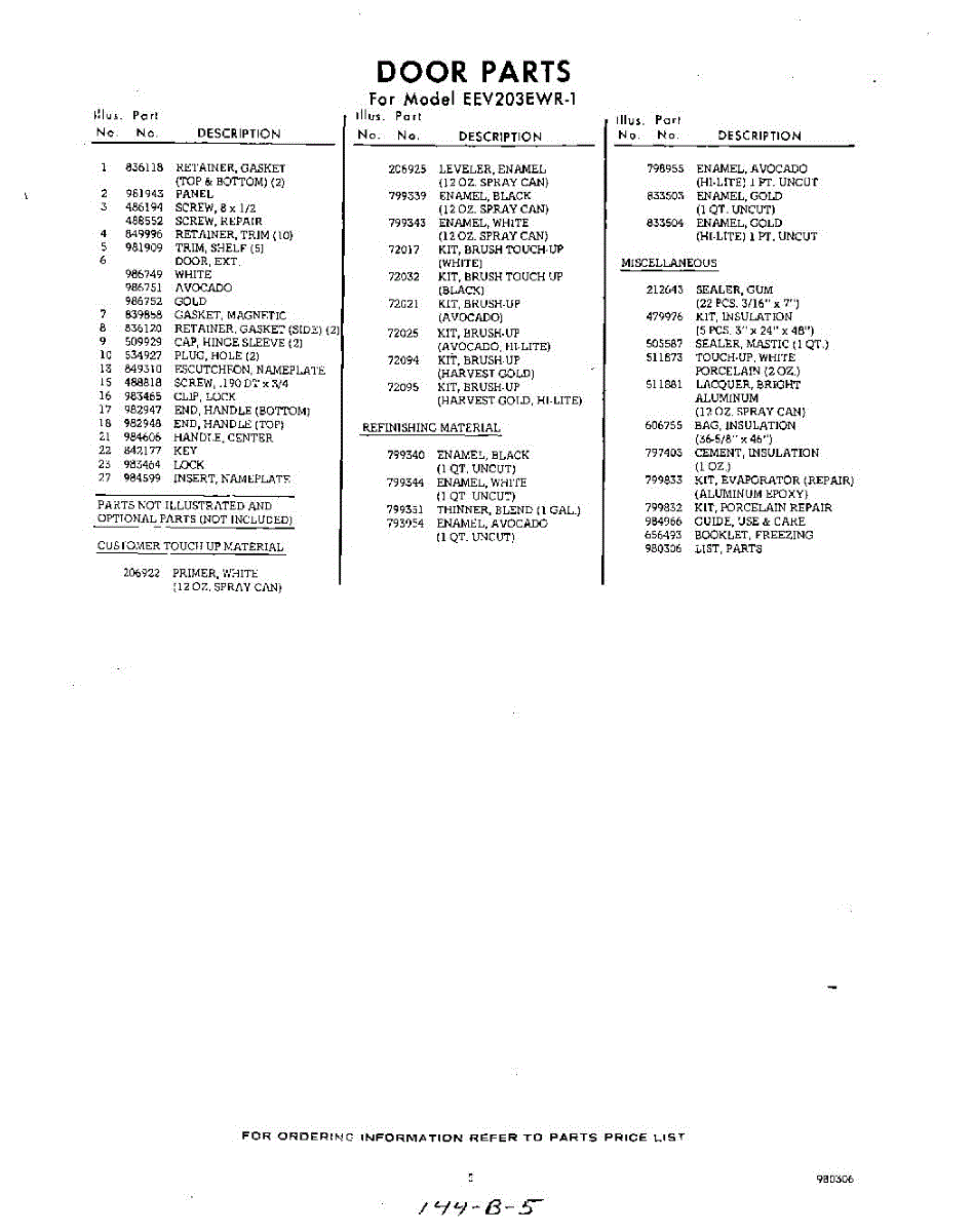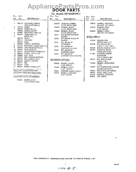 Parts for Whirlpool EEV203EAR1: 05 - Lit / Optional Parts