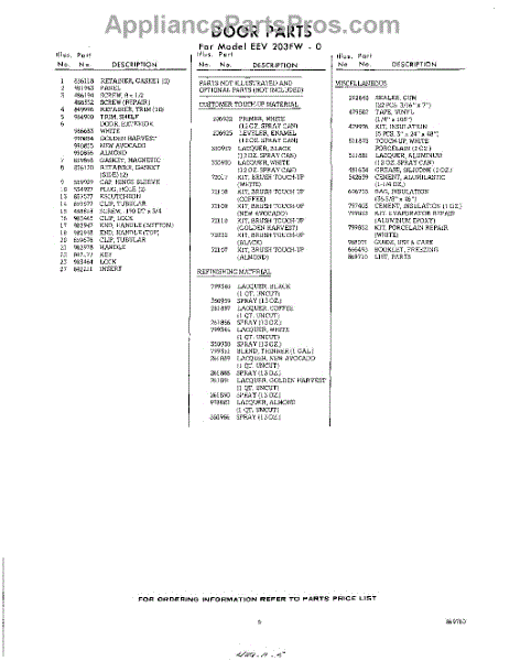 Parts for Whirlpool EEV203FW0: 05 - Lit / Optional Parts
