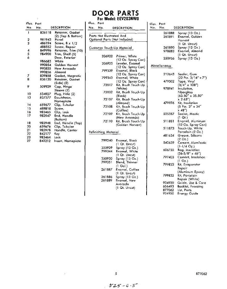 Parts for Whirlpool EEV203NW0: 05 - Lit / Optional Parts