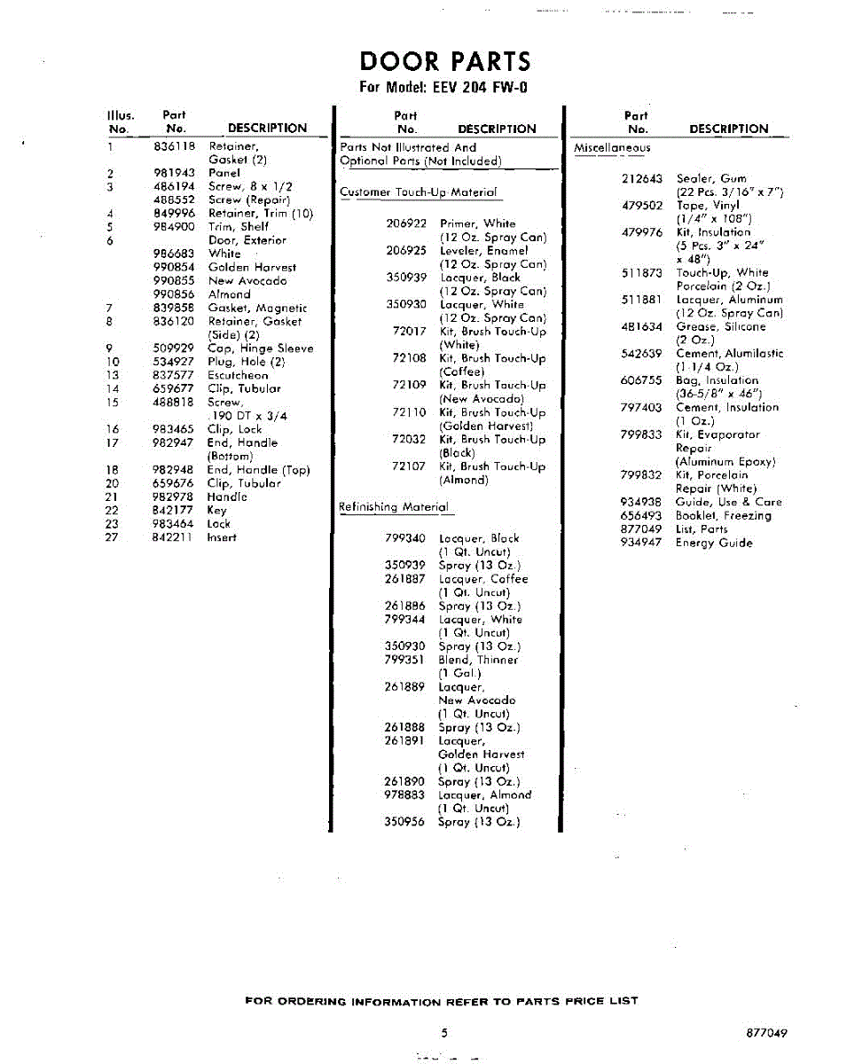 Parts for Whirlpool EEV204FW0: 05 - Lit / Optional Parts