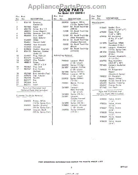 Parts for Whirlpool EEV204FW1: 05 - Lit / Optional Parts