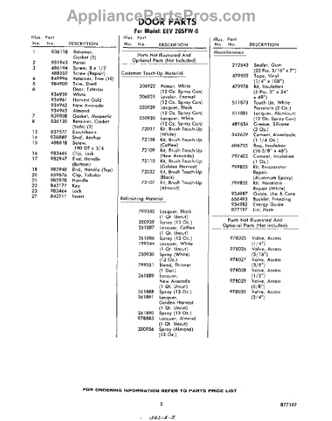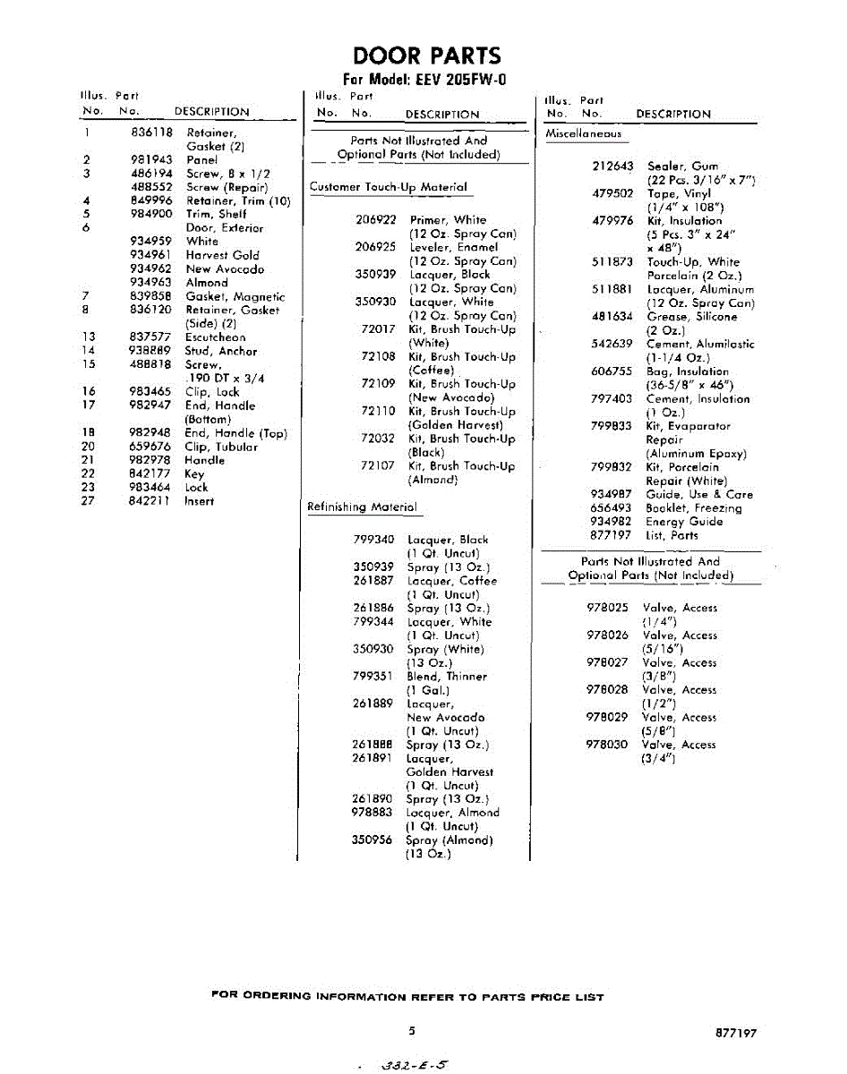 Parts for Whirlpool EEV205FW0: 05 - Lit / Optional Parts