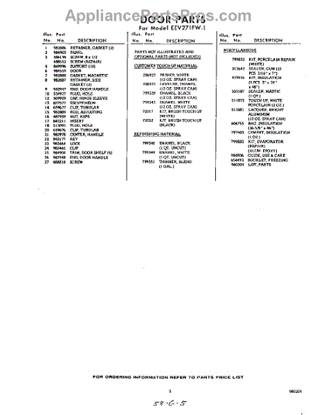 Parts for Whirlpool EEV271FW1: 05 - Lit / Optional Parts