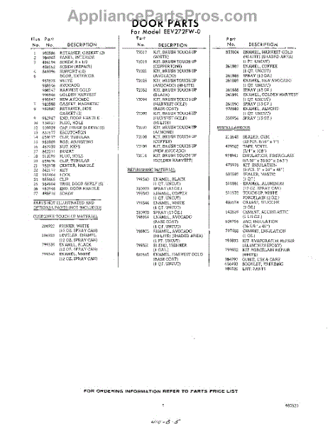 Parts for Whirlpool EEV272FW0: 05 - Lit / Optional Parts
