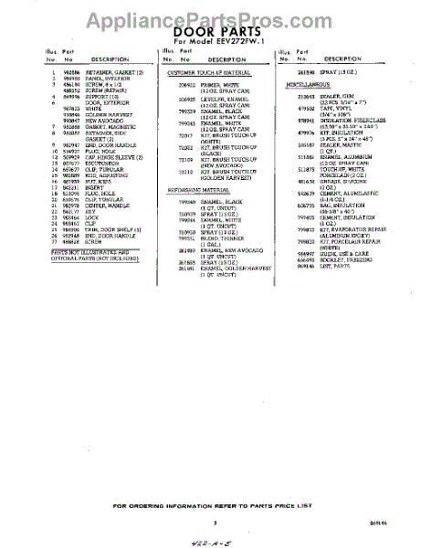 Parts for Whirlpool EEV272FW1: 05 - Lit / Optional Parts