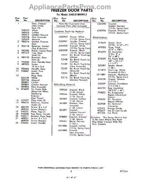 Parts for Whirlpool EHB191MKWR2: 05 - Lit / Optional Parts