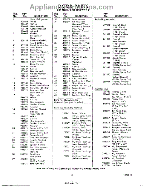 Parts for EHB191PKWR0