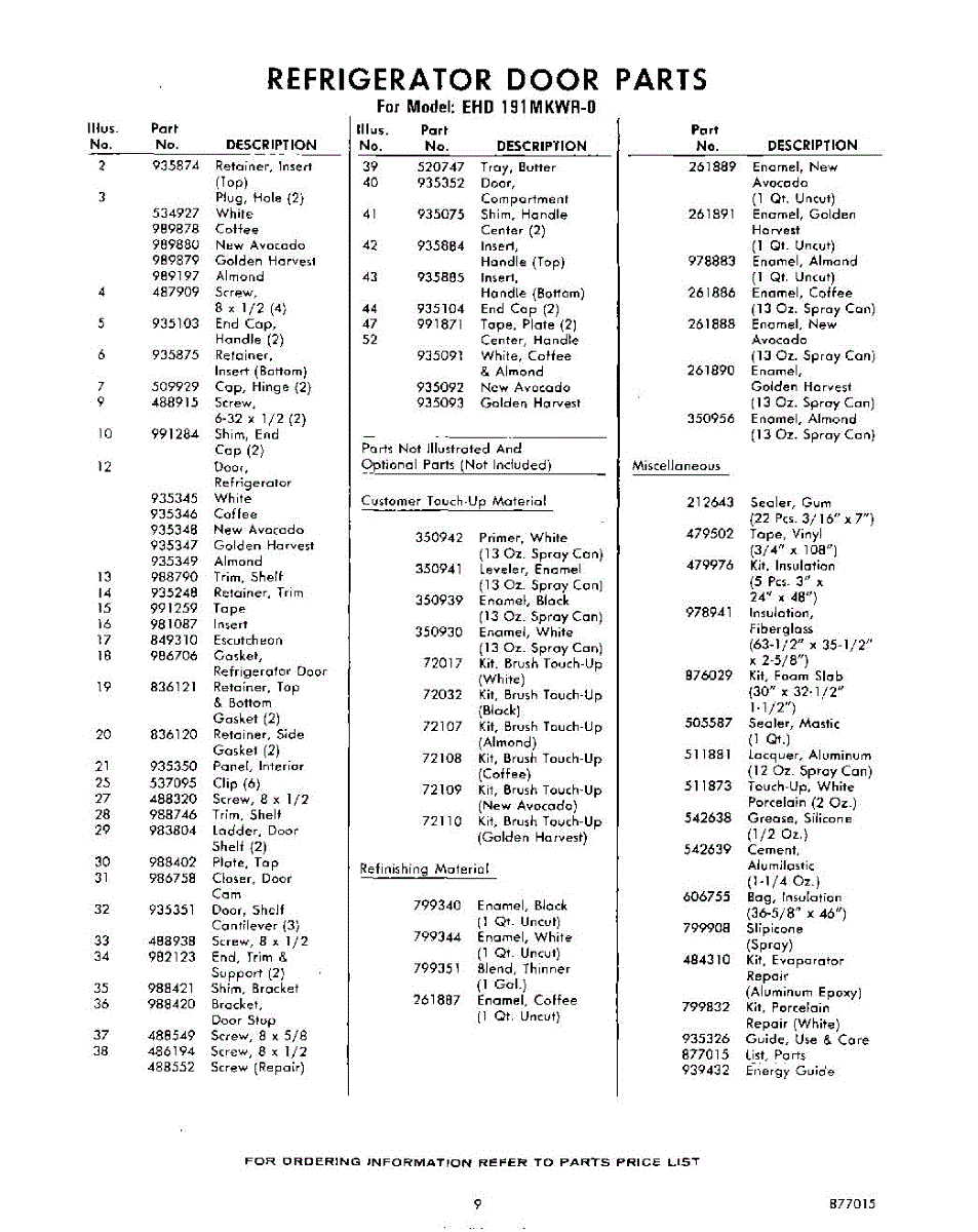 Parts for Whirlpool EHD191MKWR0: 09 - Lit / Optional Parts
