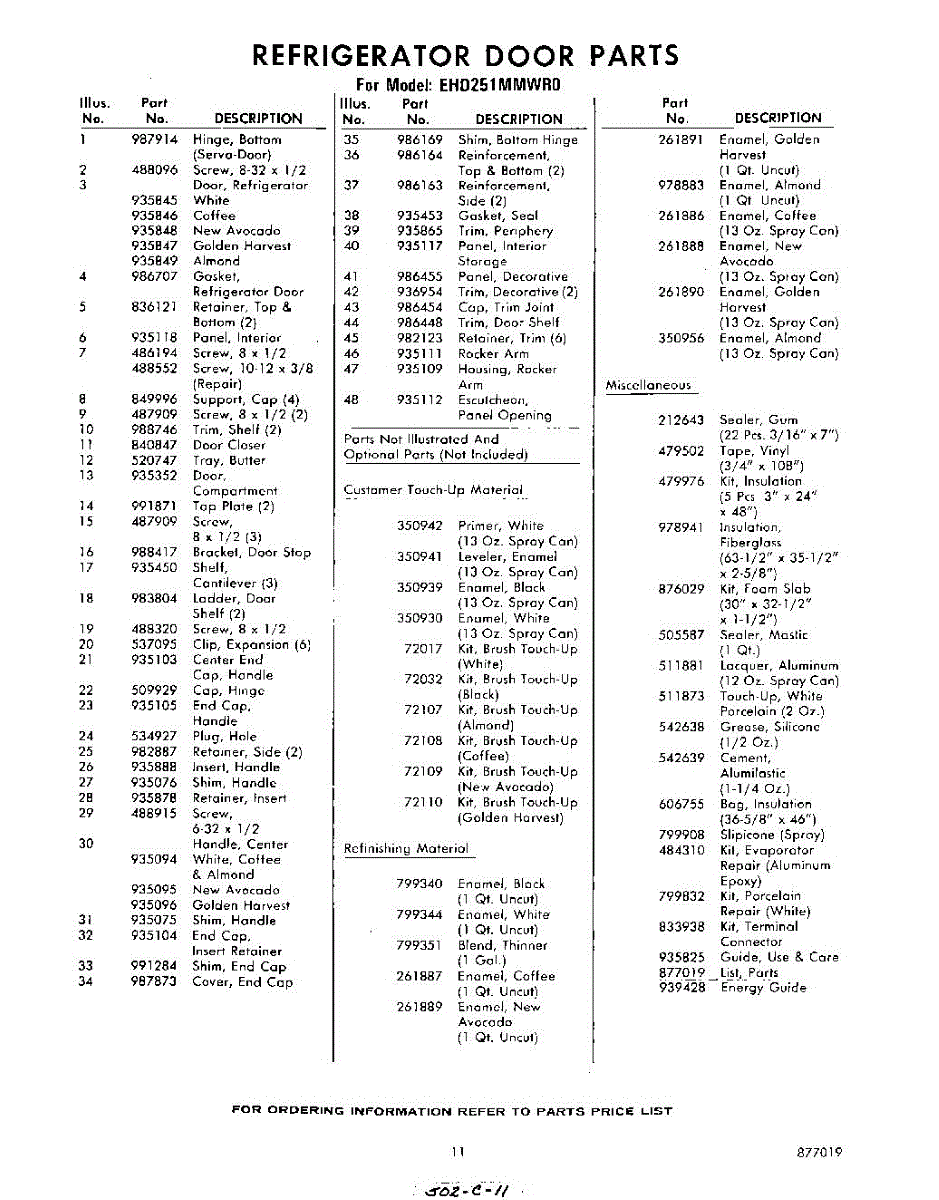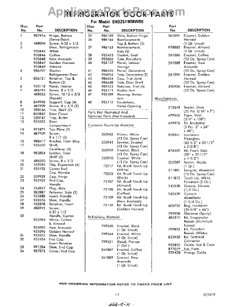Parts for Whirlpool EHD251MMWR0: 11 - Lit / Optional Parts