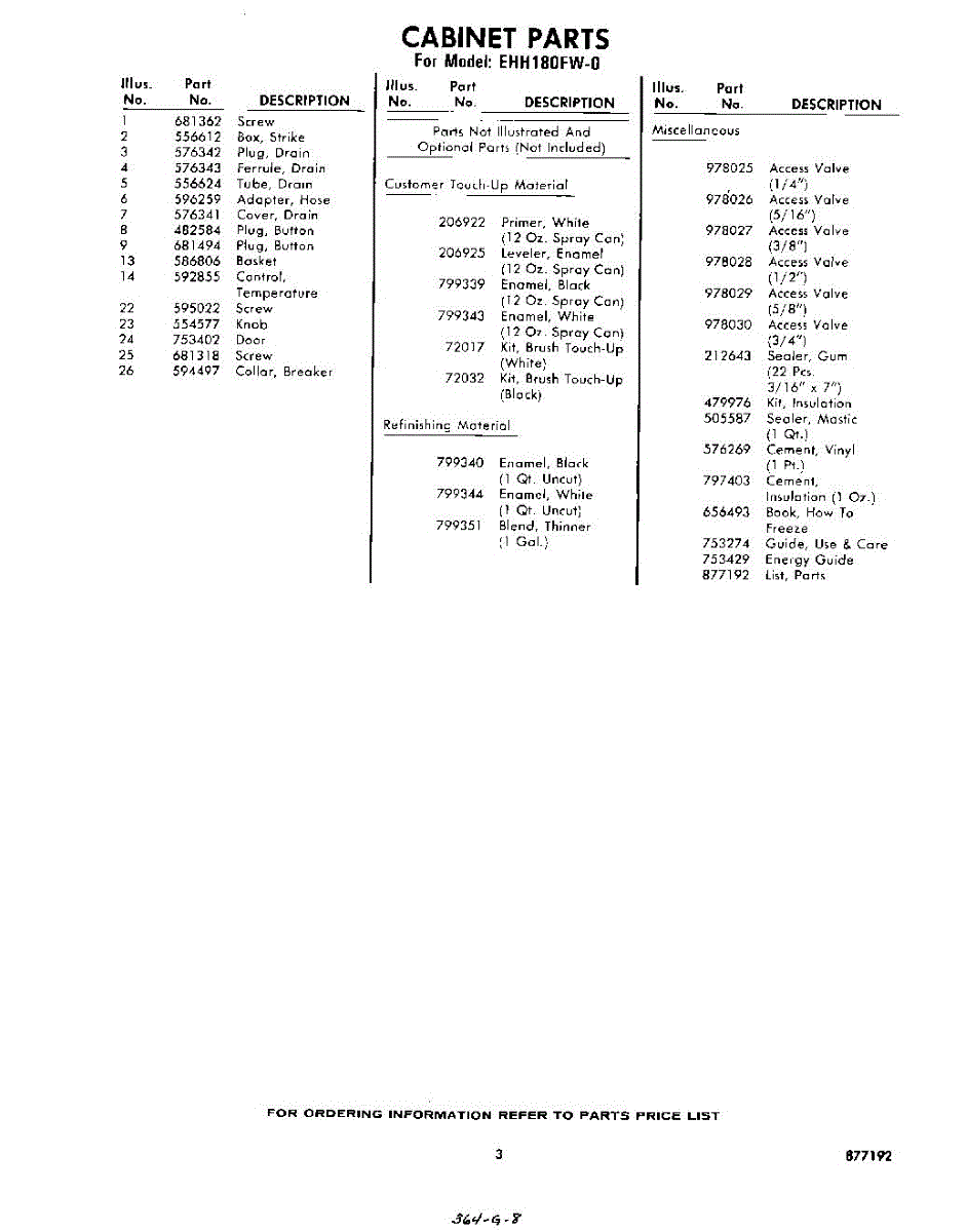 Parts for Whirlpool EHH180FW0: 03 - Lit / Optional Parts