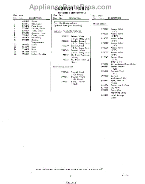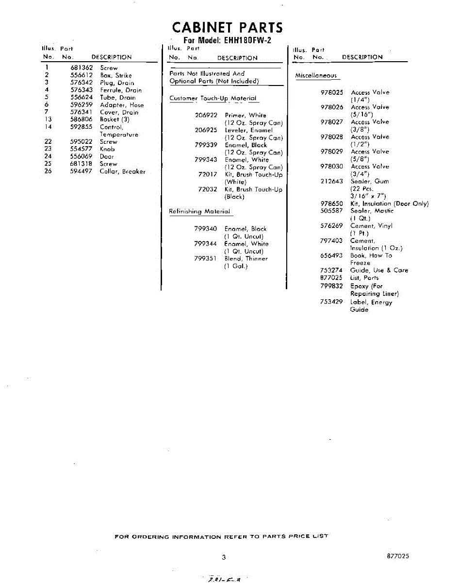 Parts for Whirlpool EHH180FW2: 03 - Lit / Optional Parts