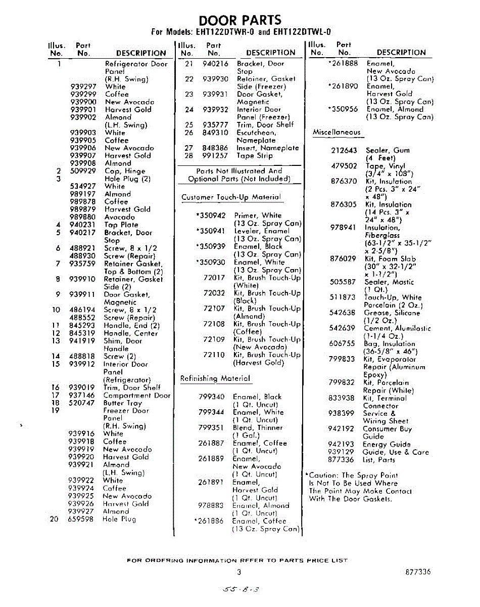 Parts for Whirlpool EHT122DTWR0: 03 - Lit / Optional Parts