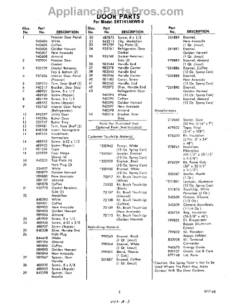 Parts for Whirlpool EHT141AKWR0: 03 - Lit / Optional Parts