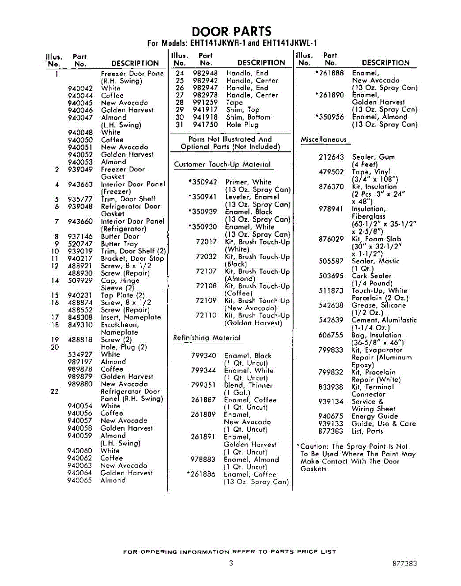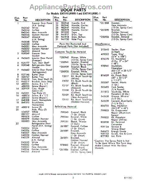 Parts for Whirlpool EHT141JKWL1: 03 - Lit / Optional Parts