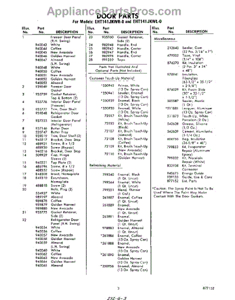 Parts for Whirlpool EHT141JKWR0: 03 - Lit / Optional Parts