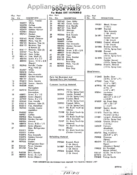 Parts for Whirlpool EHT141PKWR0: 11 - Lit / Optional Parts