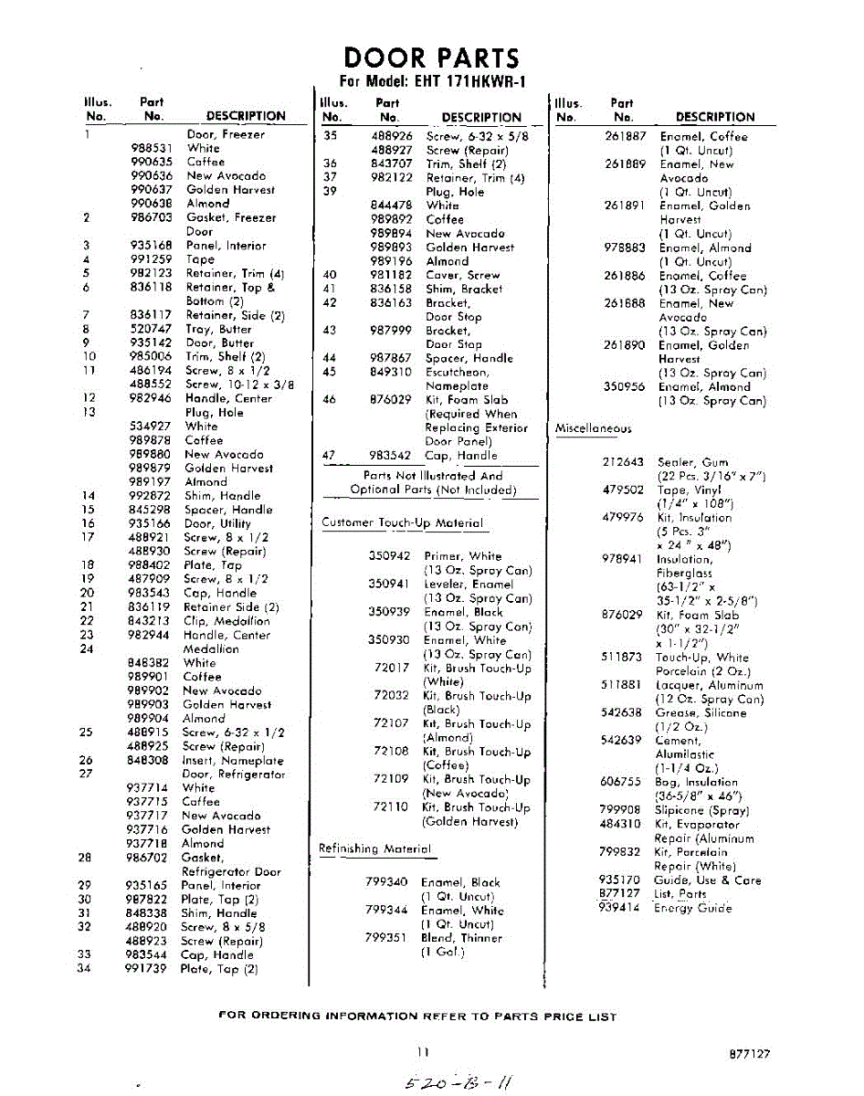 Parts for Whirlpool EHT171HKWR1: 11 - Lit / Optional Parts