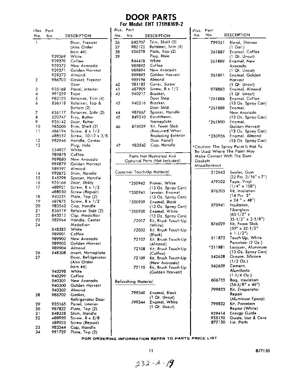 Parts for Whirlpool EHT171HKWR2: 11 - Lit / Optional Parts