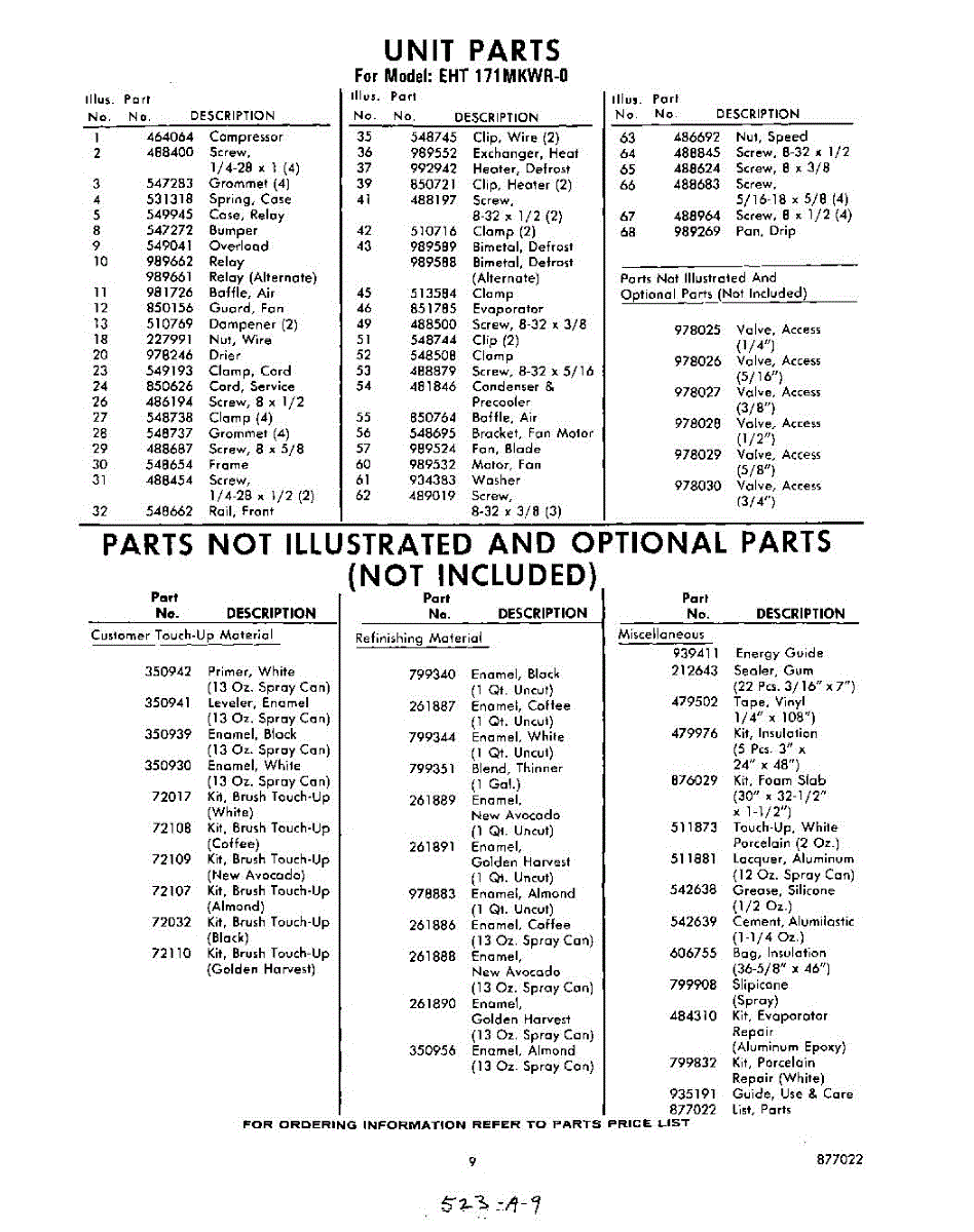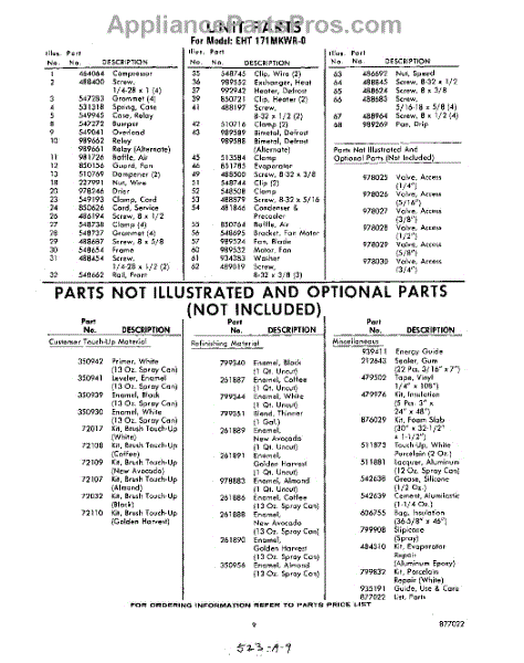 Parts for Whirlpool EHT171MKWR0: 09 - Lit / Optional Parts