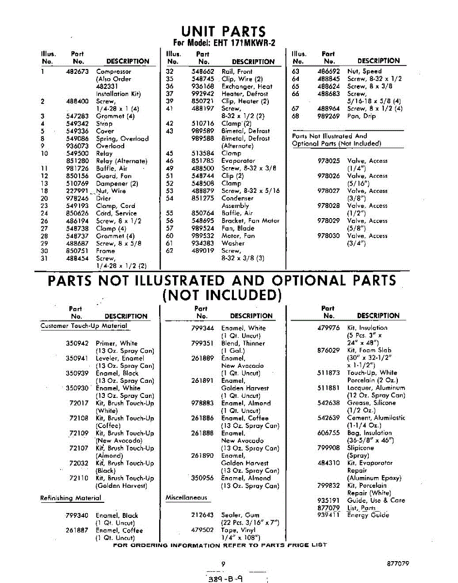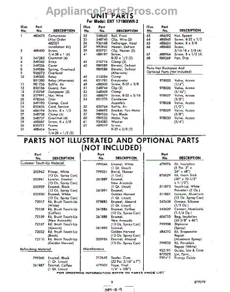 Parts for Whirlpool EHT171MKWR2: 09 - Lit / Optional Parts
