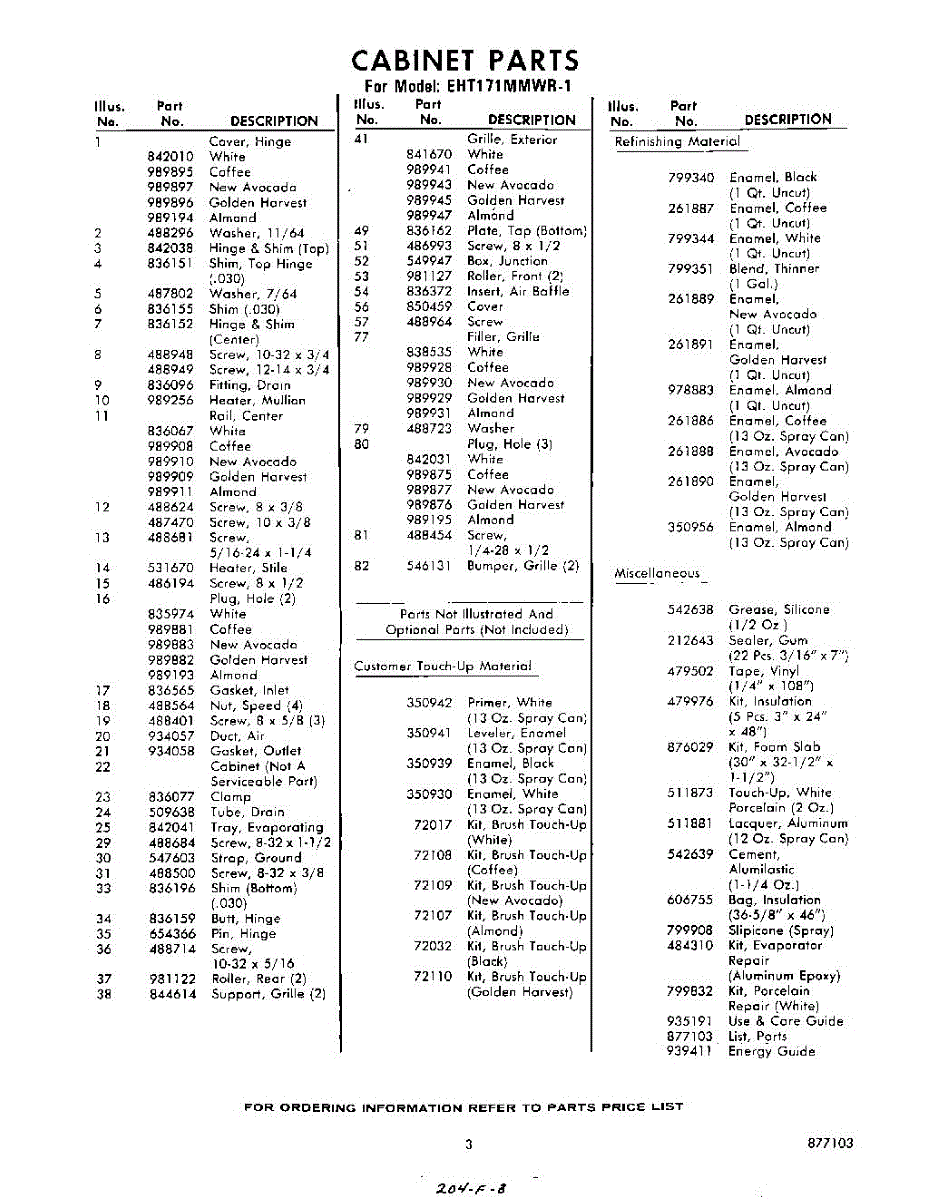 Parts for Whirlpool EHT171MMWR1: 03 - Lit / Optional Parts