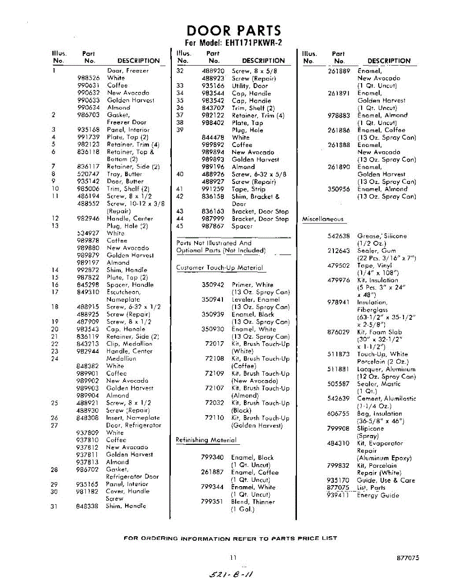 Parts for Whirlpool EHT171PKWR2: 11 - Lit / Optional Parts