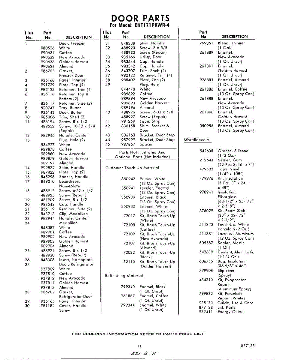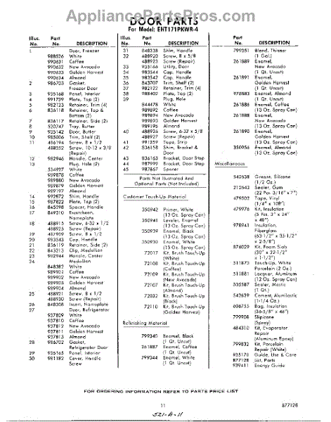 Parts for Whirlpool EHT171PKWR4: 11 - Lit / Optional Parts