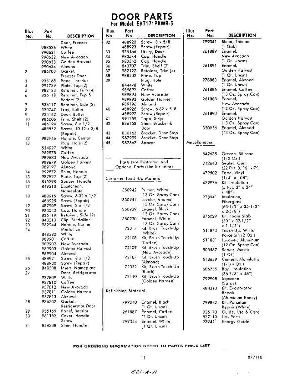 Parts for Whirlpool EHT171PKWR5: 11 - Lit / Optional Parts